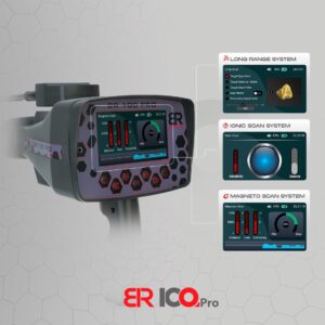 Το BR 100 Pro, η νέα έκδοση, είναι μια νέα, σύγχρονη τεχνολογία που συνδυάζει συστήματα ανίχνευσης από μεγάλες αποστάσεις και κάθετη ανίχνευση στόχων. Αυτή η συσκευή είναι μια πολύ βολική επιλογή. Έχουμε αναπτύξει αυτήν τη συσκευή και την κατασκευάσαμε με τρόπο που την καθιστά ένα από τα πιο σημαντικά αντιδραστήρια που χρησιμοποιούνται μεταξύ των ερευνητών και των ερευνητών για θησαυρούς που είναι θαμμένοι υπόγεια.Ο χρήστης της νέας συσκευής BR 100 Pro μπορεί να φτάσει πολύτιμους στόχους και πολύτιμους θησαυρούς ευκολότερα και γρηγορότερα από πριν. Αυτή η συσκευή παρέχει όλες τις ανάγκες του χρήστη για τεχνικές που τον βοηθούν στις περισσότερες έρευνες και κατακόρυφη και οριζόντια ανίχνευση και σε ευθυγράμμιση με όλα τα εδάφη και το έδαφος, καθώς αυτή η συσκευή περιλαμβάνει: Όλα τα συστήματα ανίχνευσης από μεγάλες αποστάσεις οριζόντια εκτός από το σύστημα κατακόρυφης ανίχνευσης Magneto scan .Μπορείτε να χειριστείτε αυτήν τη συσκευή και να επιλέξετε τον τύπο του στόχου που θα ανιχνευθεί έως ότου η συσκευή αρχίσει να σας κατευθύνει προς τη θέση στόχο και στη συνέχεια να επαληθεύσετε αυτόν τον στόχο μέσω του συστήματος κατακόρυφης ανίχνευσης που μπορεί να επιβεβαιώσει το σήμα στόχου μέσω ακουστικών και οπτικών ενδείξεων στην οθόνη και να υποδείξει την ένταση και το μέγεθος του σήματος στόχου και περιορίστε το σε έναν μικρό κύκλο.